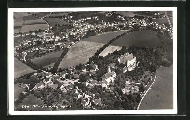 AK Erbach in Württ., Fliegeraufnahme der Ortschaft