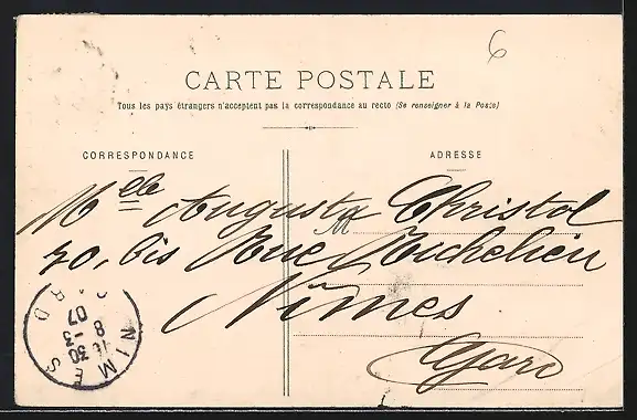 alte Ansichtskarte, gelaufen 1907, Stempelspur, guter Zustand