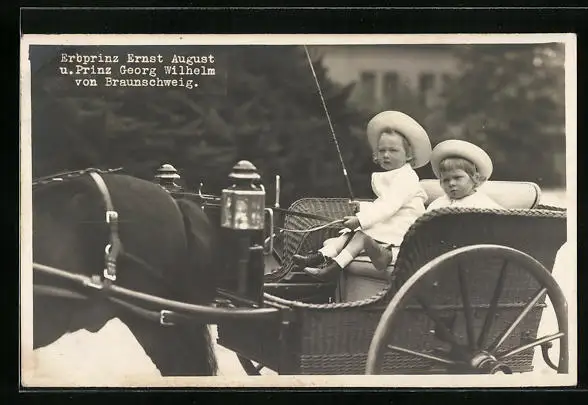 AK Erbprinz Ernst August und Prinz Georg Wilhelm von Braunschweig in der Kutsche
