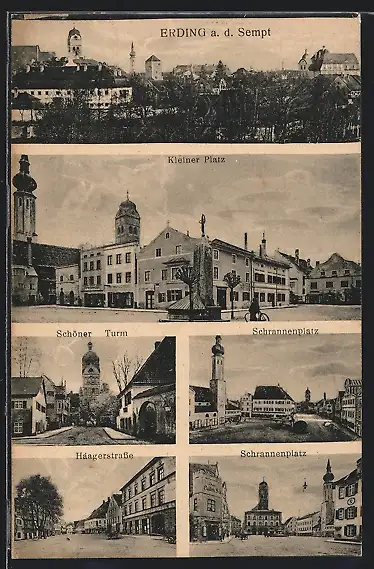 AK Erding a. d. Sempt, Schöner Turm, Schrannenplatz, Haagerstrasse
