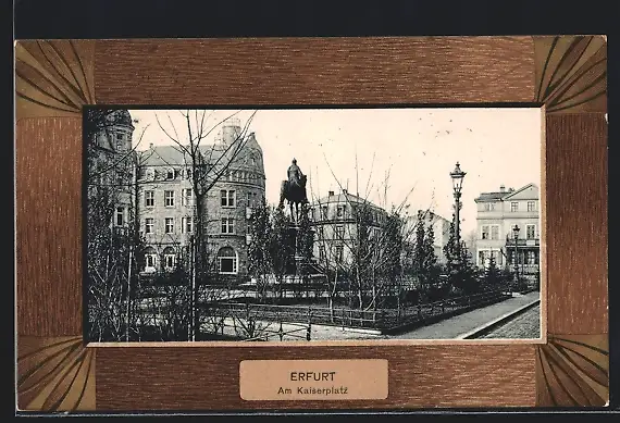 AK Erfurt, Am Kaiserplatz mit Denkmal, Passepartout