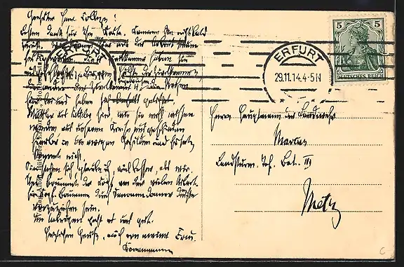 alte Ansichtskarte, gelaufen 1914, Stempelspur, guter Zustand