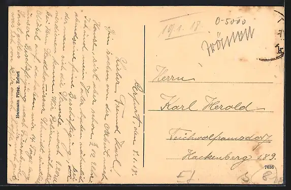 alte Ansichtskarte, gelaufen, Briefmarke entfernt, rückseitig Oberflächenschaden, guter Zustand