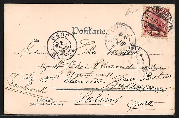 alte Ansichtskarte, gelaufen 1905, Eckknicke li. oben u. re., minimaler Einriss li. unten, guter Zustand