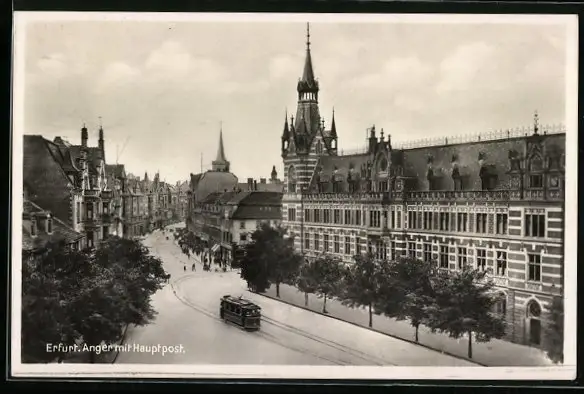 AK Erfurt, Anger mit Hauptpost und Strassenbahn