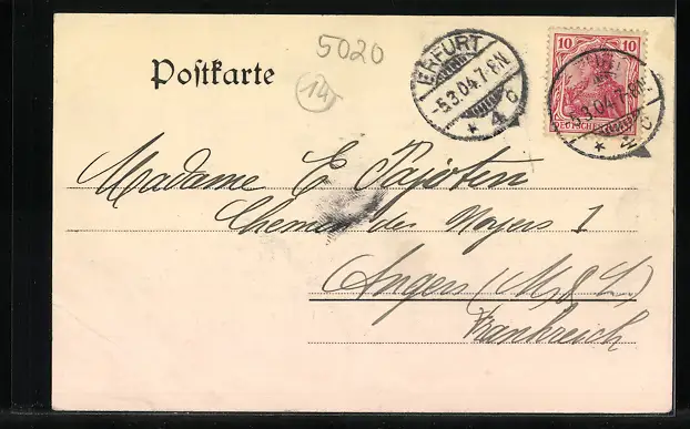 alte Ansichtskarte, gelaufen 1904, Eckknick unten re., guter Zustand