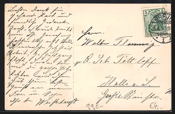 alte Ansichtskarte, gelaufen 1911, Eckknick re. unten, guter Zustand