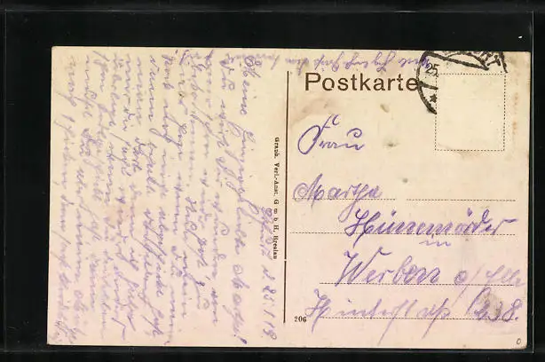 alte Ansichtskarte, gelaufen 1919, Briefmarke entfernt, guter Zustand