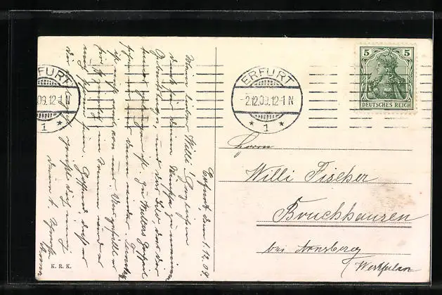 gelaufen 1909, Eckknick rechts unten, Stempelspur, guter Zustand
