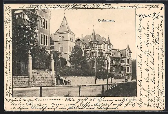 AK Erfurt, Cyriastrasse mit Turmgebäuden