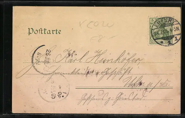 alte Ansichtskarte, gelaufen 1905, Albumspuren, guter Zustand