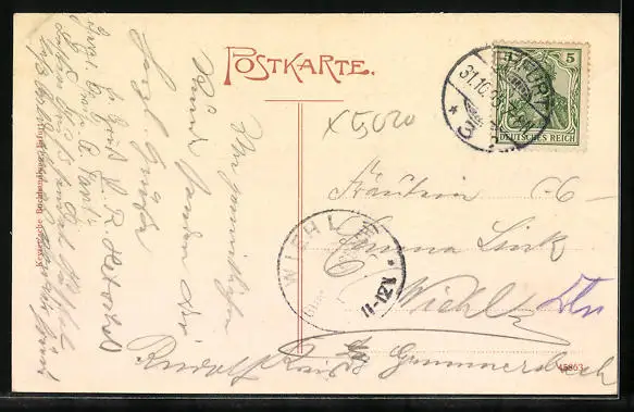 alte Ansichtskarte, gelaufen 1905, Albumspuren, guter Zustand