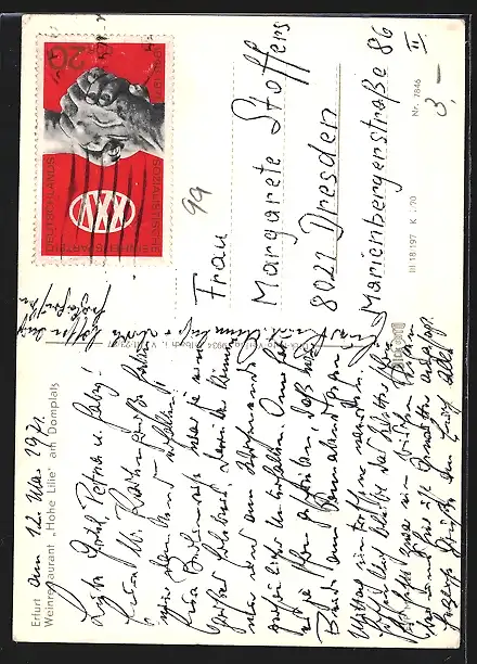 alte Ansichtskarte, gelaufen 1971, Eckknick oben li., guter Zustand