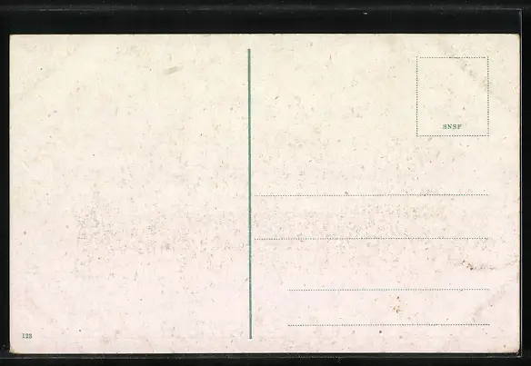 Personenbezogene Daten auf der Rückseite der Karte wurden durch blauen Textmarker unkenntlich gemacht. Die blauen Stellen sind auf die Vorderseite durchgeweicht und wirken sich negativ auf das Postkartenfoto aus