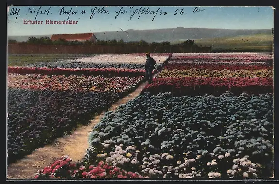 AK Erfurt, Erfurter Blumenfelder mit Fernblick