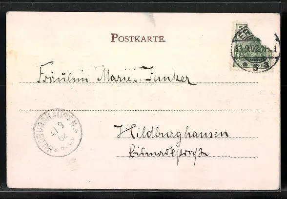 alte Ansichtskarte, gelaufen 1902, guter Zustand
