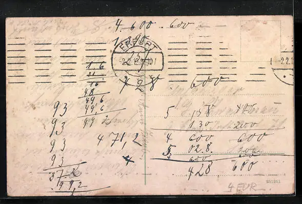 Personenbezogene Daten auf der Rückseite der Karte wurden durch blauen Textmarker unkenntlich gemacht. Die blauen Stellen sind auf die Vorderseite durchgeweicht und wirken sich negativ auf das Postkartenfoto aus