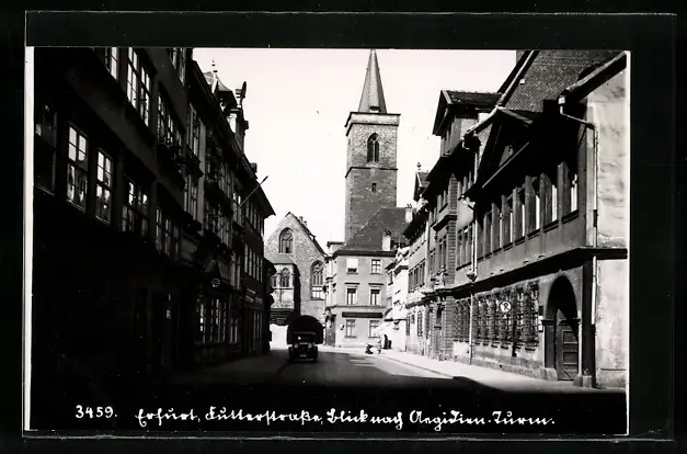 AK Erfurt, Futterstrasse mit Blick auf Aegidien-Turm