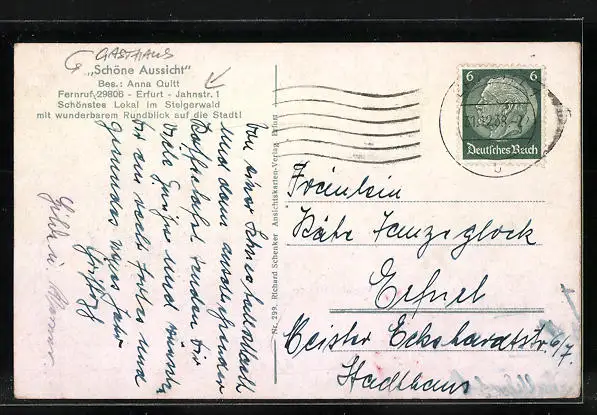 AK Erfurt, Gasthaus Schöne Aussicht in der Jahnstrasse 1
