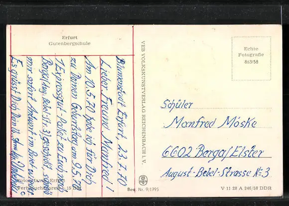 ungelaufen, Rückseite beschrieben 1970, guter Zustand