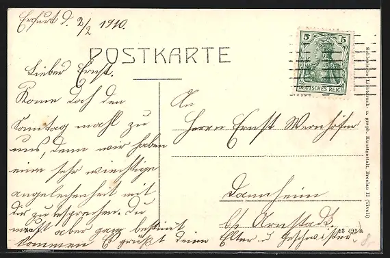 alte Ansichtskarte, gelaufen 1910, guter Zustand