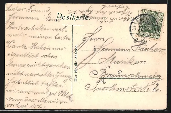 alte Ansichtskarte, gelaufen 1907, guter Zustand