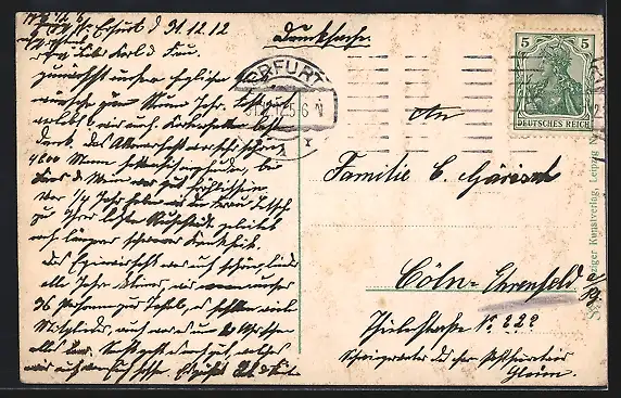 alte Ansichtskarte, gelaufen 1912, guter Zustand