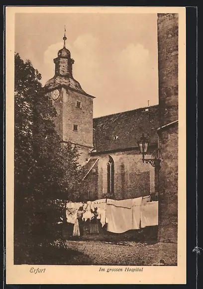 AK Erfurt, Im grossen Hospital, Wäscheleine