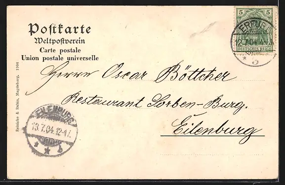 alte Ansichtskarte, gelaufen 1904, guter Zustand