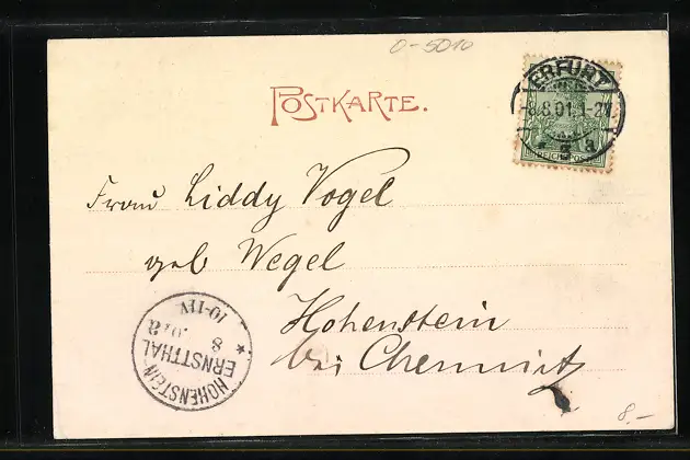 alte Ansichtskarte, gelaufen 1901, Stempelspur, guter Zustand