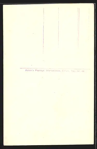 Personenbezogene Daten auf der Rückseite der Karte wurden durch blauen Textmarker unkenntlich gemacht. Die blauen Stellen sind auf die Vorderseite durchgeweicht und wirken sich negativ auf das Postkartenfoto aus