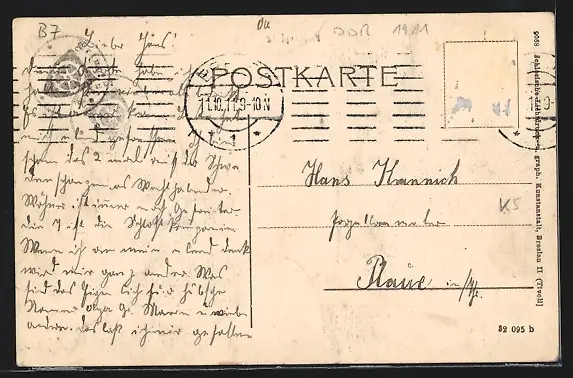 alte Ansichtskarte, gelaufen, Briefmarke entfernt, guter Zustand