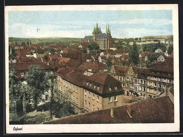 AK Erfurt, Ortsansicht mit Dom aus der Vogelschau