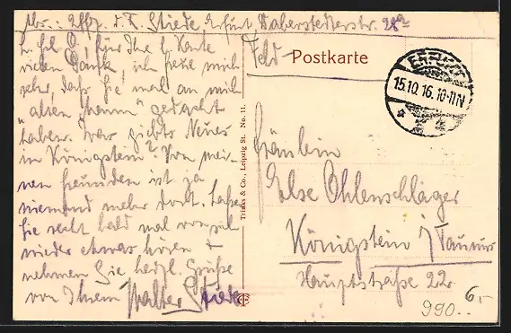 alte Ansichtskarte, gelaufen 1916, Eckknick li. oben, guter Zustand