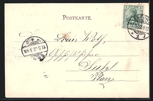 alte Ansichtskarte, gelaufen 1902, guter Zustand