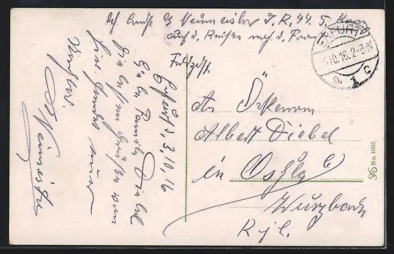 alte Ansichtskarte, gelaufen 1916, Eckknick li. oben, guter Zustand