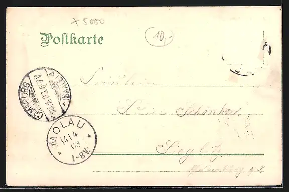 alte Ansichtskarte, gelaufen 1903, Briefmarke entfernt, rückseitig Oberflächenschaden, guter Zustand