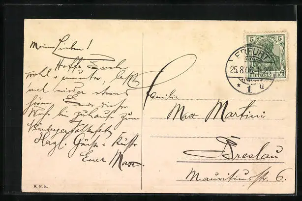 alte Ansichtskarte, gelaufen 1908, guter Zustand