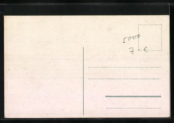 Personenbezogene Daten auf der Rückseite der Karte wurden durch blauen Textmarker unkenntlich gemacht. Die blauen Stellen sind auf die Vorderseite durchgeweicht und wirken sich negativ auf das Postkartenfoto aus
