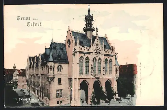 AK Erfurt, Rathaus mit Bäumen