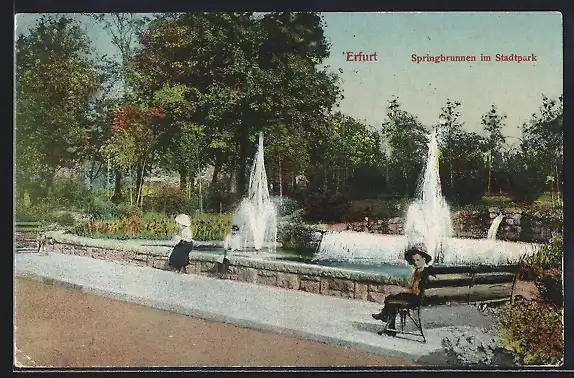 AK Erfurt, Springbrunnen im Stadtpark