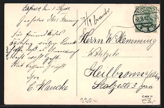 alte Ansichtskarte, gelaufen 1912, Eckknick li. unten, guter Zustand