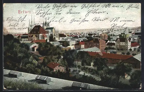 AK Erfurt, Stadtansicht von einer Anhöhe aus