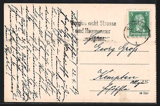 alte Ansichtskarte, gelaufen 1927, Eckknicke re., Bugspur re. senkrecht, guter Zustand
