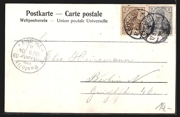 alte Ansichtskarte, gelaufen 1904, Stempelspur, guter Zustand