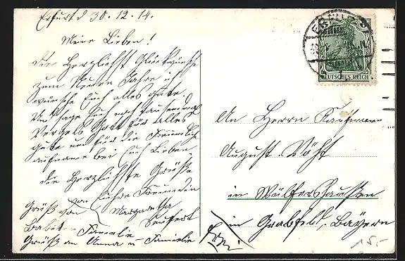 alte Ansichtskarte, gelaufen 1914, rückseitig Oberflächenschaden, guter Zustand