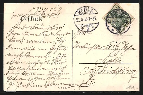 alte Ansichtskarte, gelaufen 1906, Stempelspur, guter Zustand