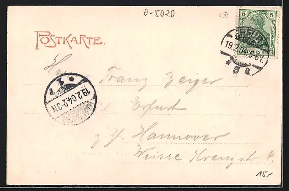 alte Ansichtskarte, gelaufen 1904, guter Zustand