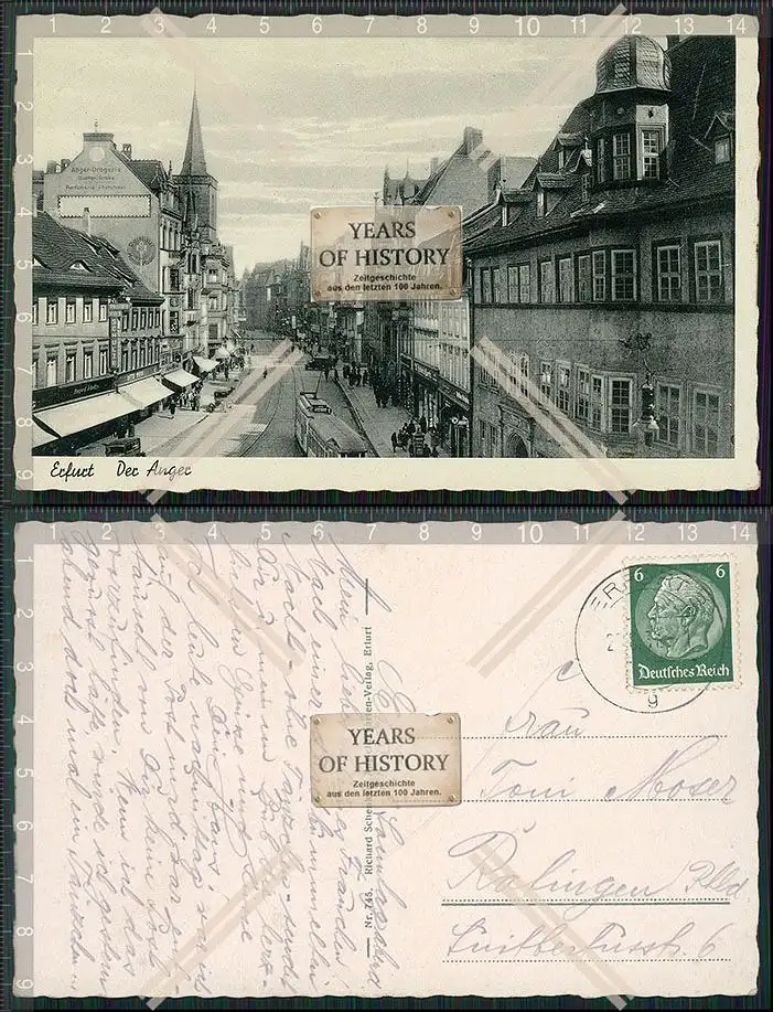 AK Erfurt in Thüringen Anger Geschäfte Straßenbahn Autos Passanten 1937 gel. M2024-06-21-040AK Erfurt in Thüringen Anger Geschäfte Straßenbahn Autos Passanten 1937 gel.