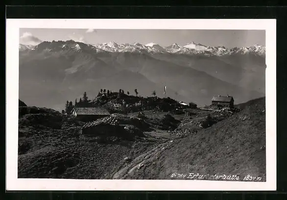AK Erfurter Hütte, Berghütte vor Gebirgspanorama